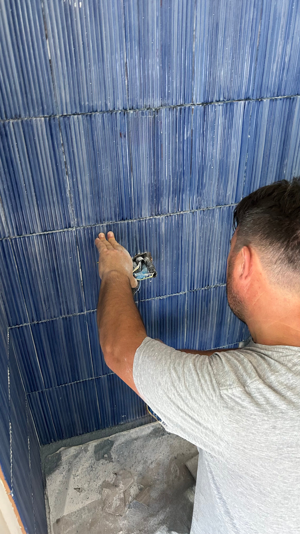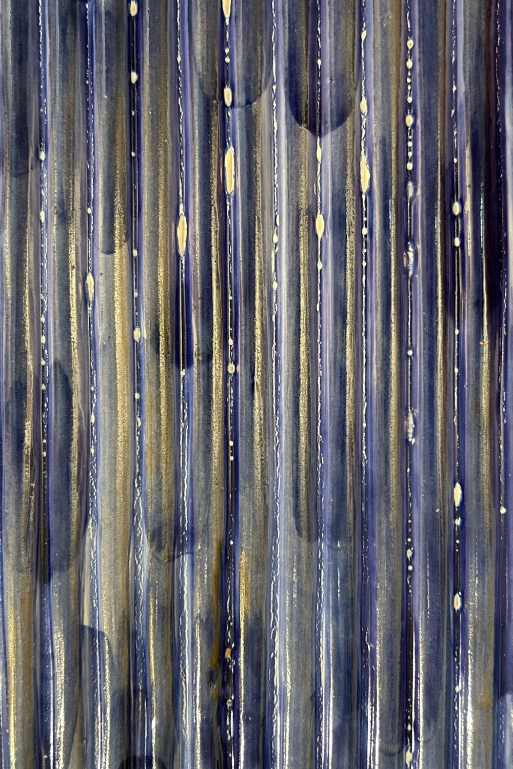 Cotto artigianale tridimensionale cannettato pennellato blu