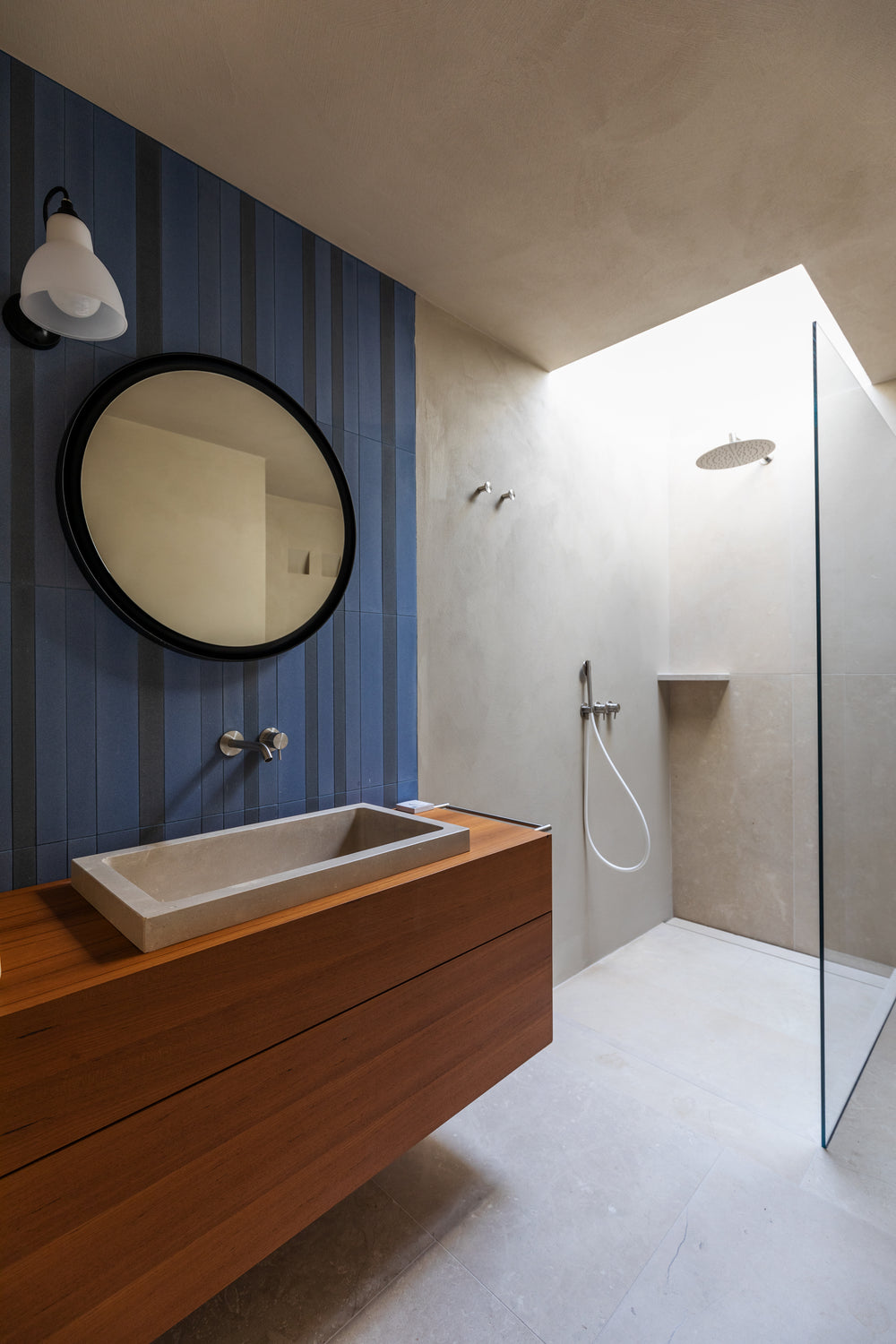 Pietra dal colore beige tenuo, leggermente grigiastro con intrusioni fossili e sporadiche vene color grafite. Finitura spazzolata.