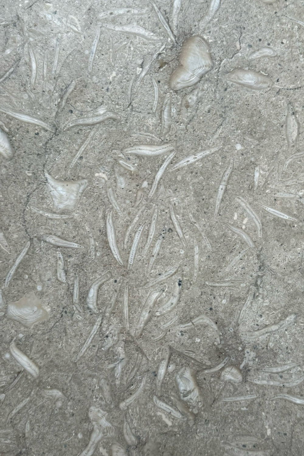 Pietra Grigio caldo con intrusioni fossili di medie dimensioni